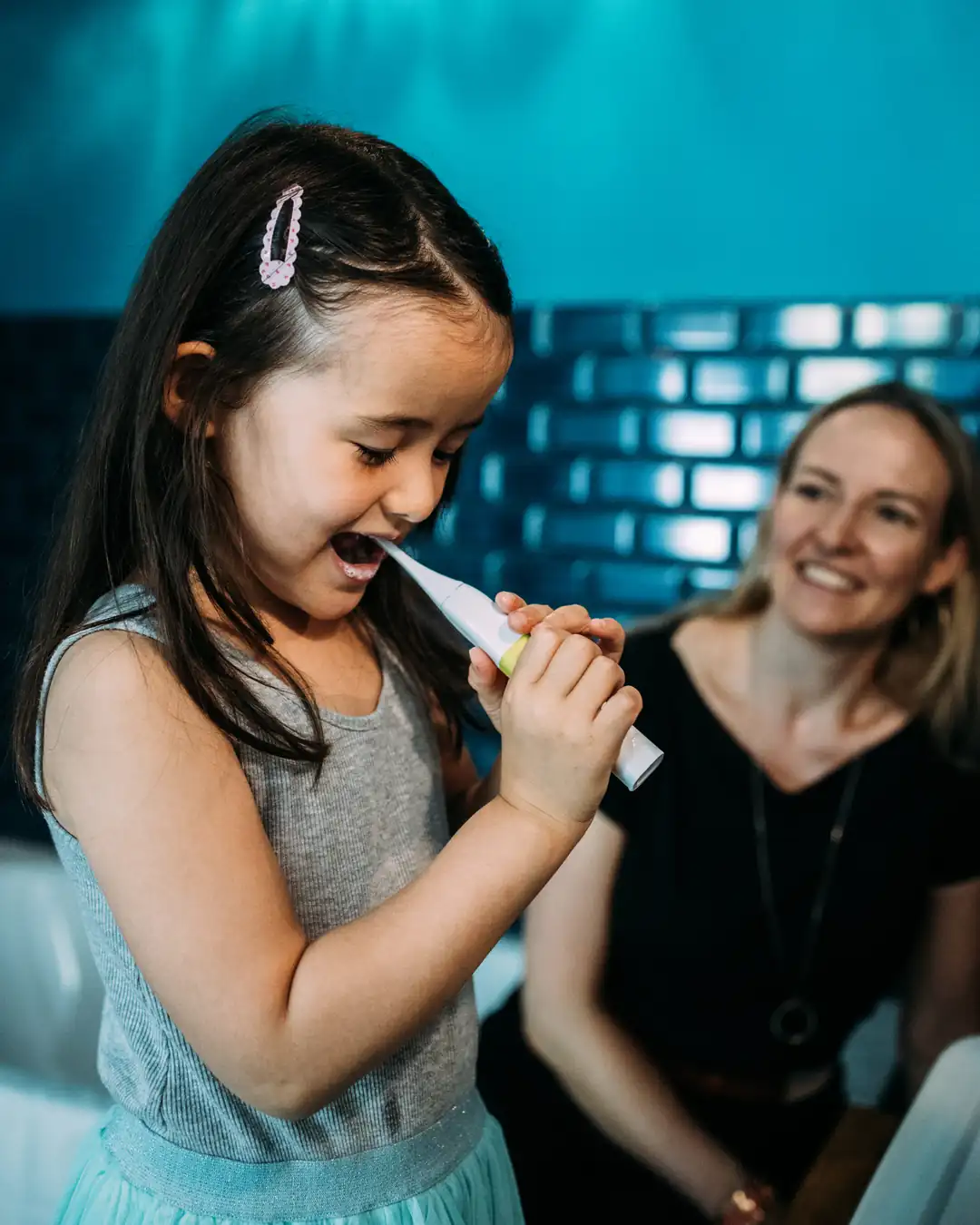 Çocuk diş ve diş etleri için konforlu fırçalama deneyimi. Brushy, “fırçala” demek yerine alışkanlık inşa eder.