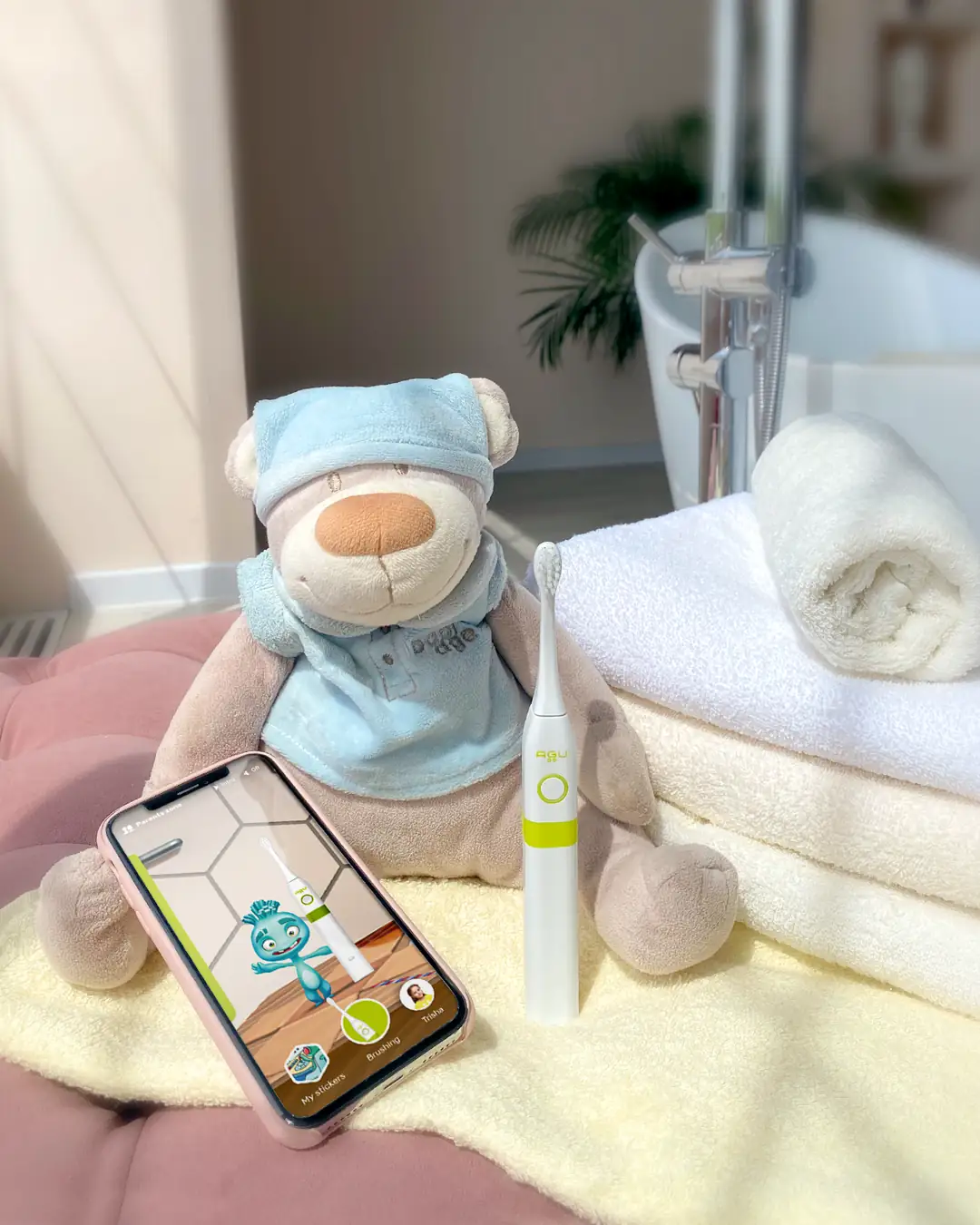 AGU Brushy, çocuklara doğru diş fırçalama alışkanlığını kazandırmak için tasarlanmış yenilikçi bir elektrikli diş fırçasıdır. İnteraktif mobil uygulaması sayesinde fırçalama, çocuklar için zorunlu bir rutin değil, katılım sağlayan eğlenceli bir deneyim haline gelir.